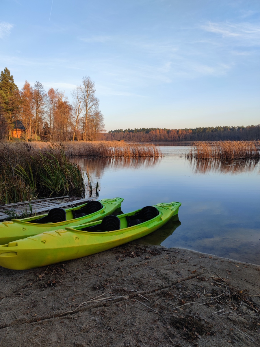 Prywatny spływ kajakowy zaczynamy w odległości 50 m od naszych domków. Spływ prowadzi przez bogato zarybione jezioro Orzyc, które połączone jest z jeziorem Pisz, kolejno wpływamy Pisą Warmińską do wsi Zalesie, a następnie do miasta “Cittaslow” Barczewo, nazywanego też Wenecją Warmii, ze względu na ilość mostów, które się tam znajdują.