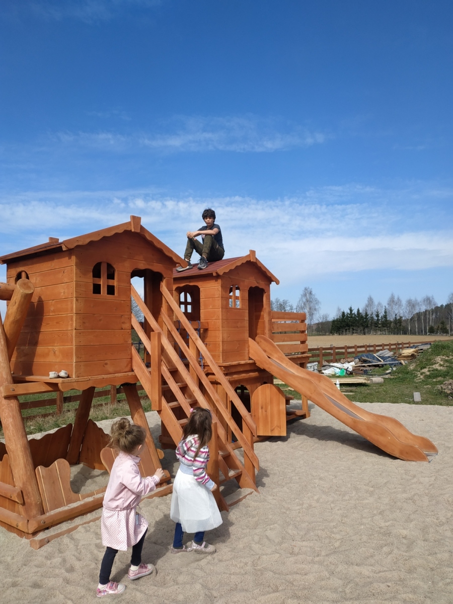 Dla najmłodszych w wieku od 1 do 10 lat przygotowaliśmy bezpieczny plac zabaw z domkami z ruchomą kładką, ślizgiem, piaskownicą z zestawem foremek, stolikiem z ławeczkami, linką i ścianką do wspinaczki oraz dwiema huśtawkami. Miejsce to cieszy się dużą popularnością wśród dzieci i ich rodziców szczególnie w przypadku gorszej pogody. Zapraszamy wszystkich milusińskich do wspólnej zabawy :).